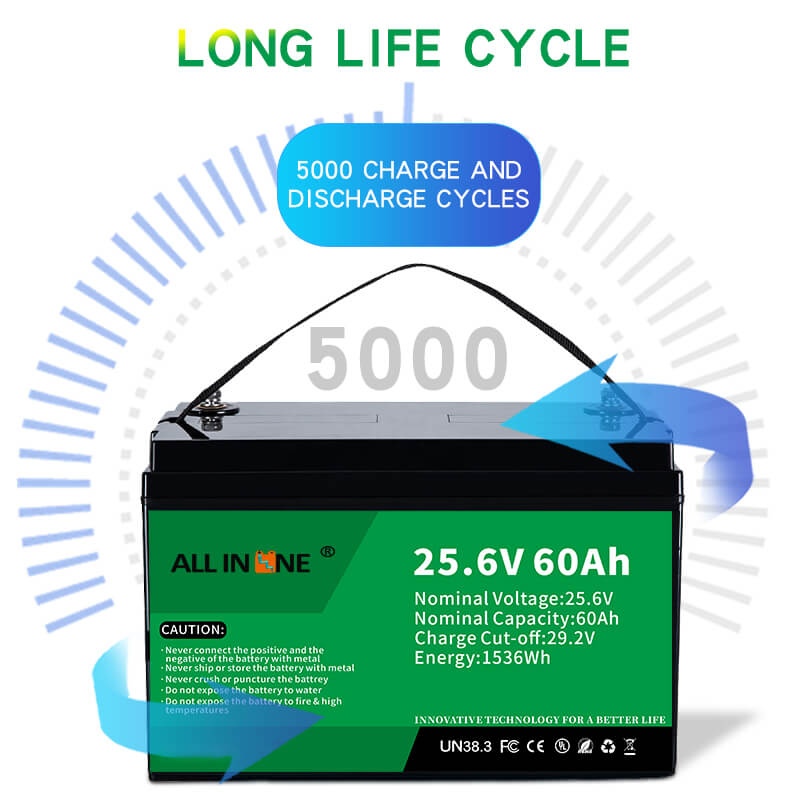 Այս 25.6V 60Ah LFP մարտկոցը կարող է կատարյալ փոխարինել AGM/GEL մարտկոցին, ALL IN ONE- ը նաև տրամադրում է հարմարեցված մարտկոցներ `տարբեր հզորությամբ, չափսերով և գործառույթներով` ըստ հաճախորդի հատուկ պահանջների: Համեմատելով AGM/GEL կապարի թթու մարտկոցների հետ, ALL IN ONE Li-ion (LiFePO4) փոխարինող լուծույթներն ունեն հետևյալ առավելությունները.