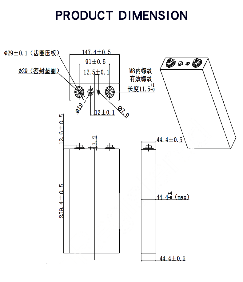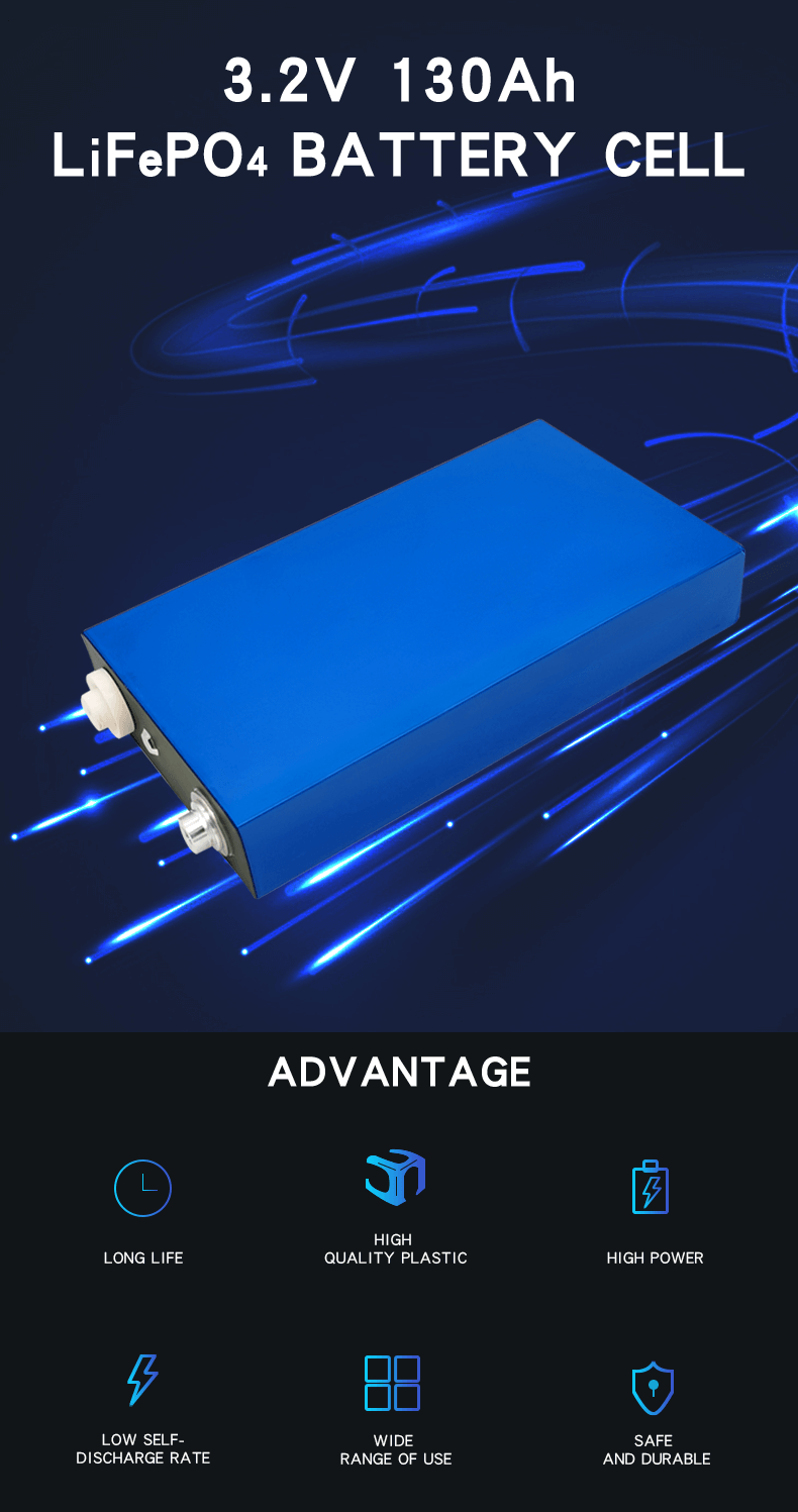 Այս UL սերտիֆիկացված 3.2V 130Ah LiFePO4 մարտկոցի բջիջը ունի հետևյալ առավելությունները.