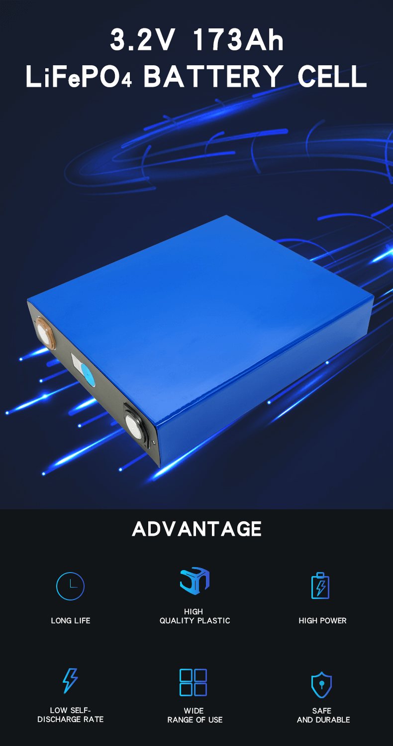 Այս UL սերտիֆիկացված 3.2V 173Ah LiFePO4 մարտկոցի բջիջն ունի հետևյալ առավելությունները.