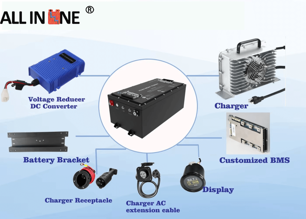 7) Մենք կարող ենք ապահովել ամբողջական համակարգային լուծում, ինչպիսիք են լիցքավորիչը, լարման ռեդուկտորը, փակագիծը և այլն