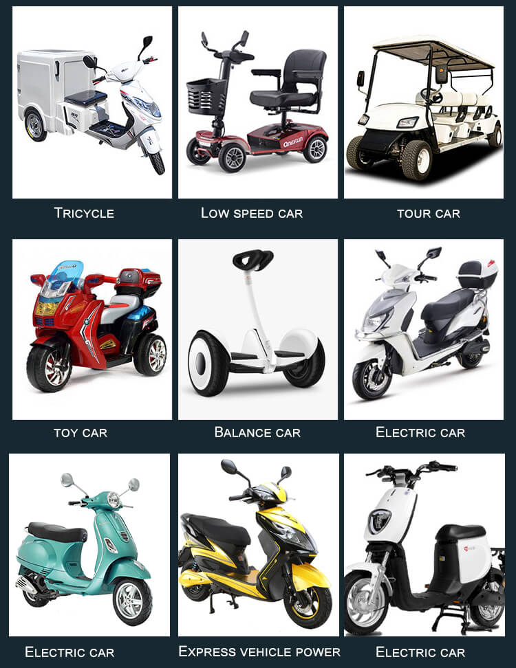 ♦ Էլեկտրոնային մեքենա, գոլֆի տրոլեր/մեքենա, էլեկտրական հեծանիվ, սկուտեր, RV, AGV, ծովային, տուրիստական մեքենա, քարավան, անիվի աթոռ, էլեկտրոնային մաքրիչ, հատակի մաքրիչ,