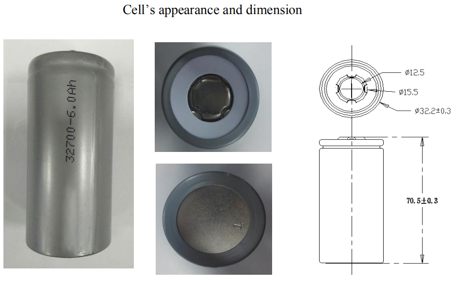 Բջջային SIze | Տրամագիծը `32,2 ± 0,3 մմ, առավելագույնը 32,5 մմ | Բարձրությունը ՝ 70,5 ± 0,3 մմ, առավելագույնը ՝ 70,8 մմ |
