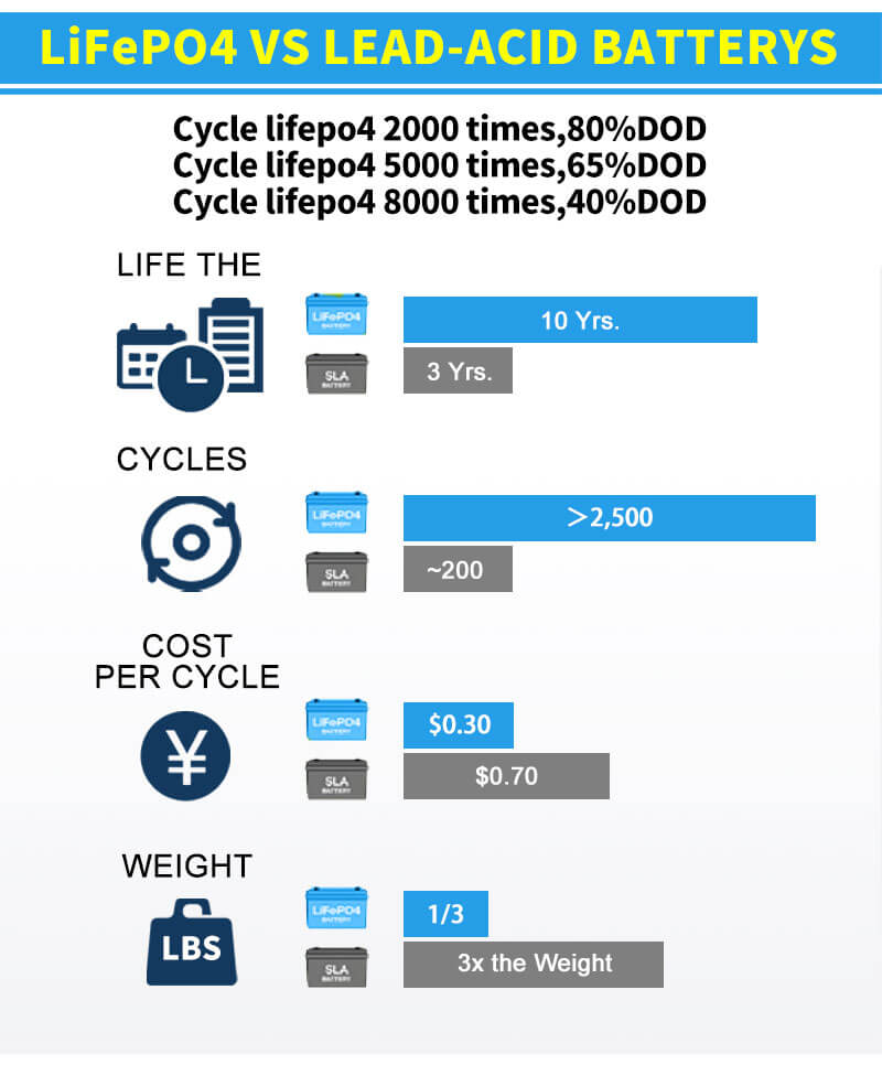 ♦ Ավելի երկար ցիկլի կյանք. Առաջարկում է մինչև 20 անգամ ավելի երկար ցիկլի կյանք և հինգ անգամ ավելի երկար լողացող / օրացուցային կյանք, քան կապարի թթվային մարտկոցը ՝ օգնելով նվազագույնի հասցնել փոխարինման ծախսերը և նվազեցնել սեփականության ընդհանուր արժեքը: